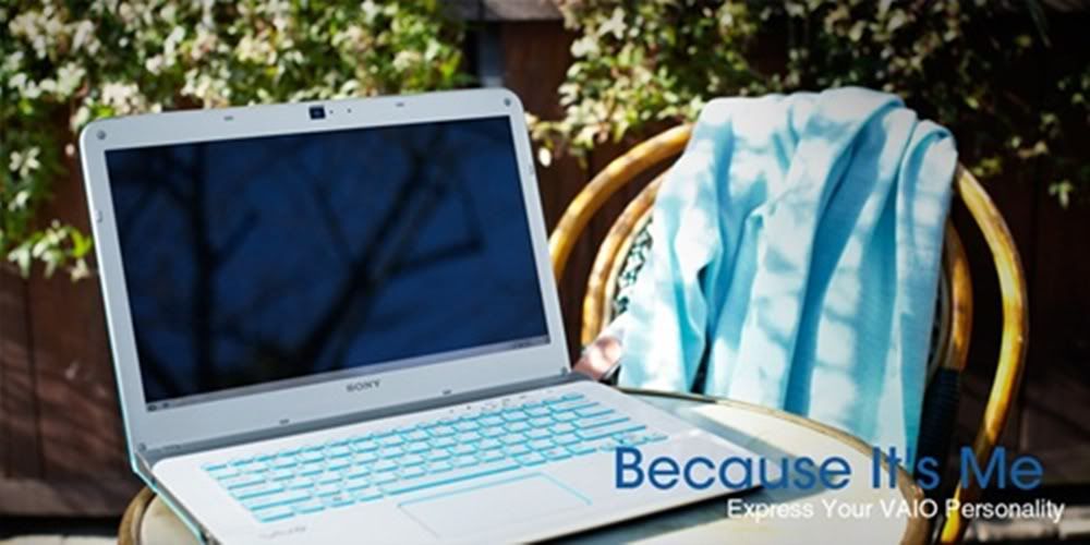 Aku langsung jatuh cinta ama VAIO warna putih itu. Akhirnya aku nemuin notebook yang aku banget banget. Notebook yang melambangkan Calm and Independent. Stylish, performa terkini lagi. Makin keren deh aku pasti. Yeaa, Because it’s Me.....:))